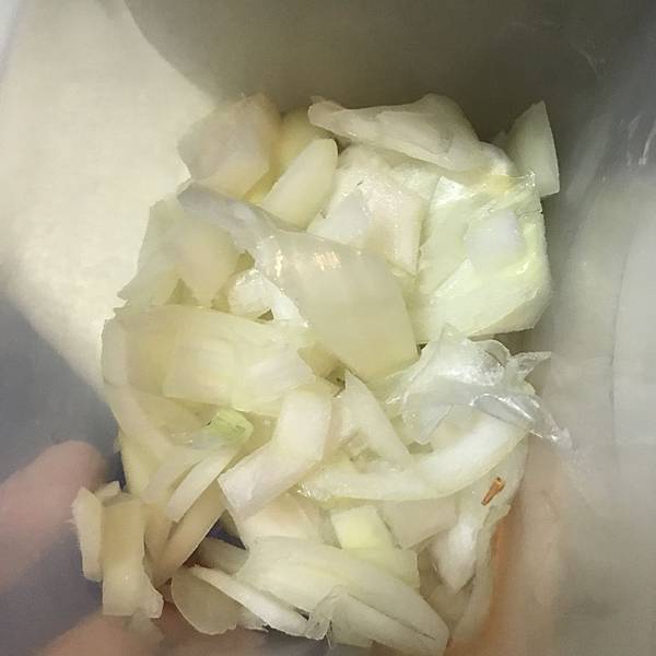首先,洋蔥半顆,很隨便的切碎。