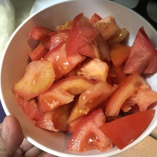 然後,牛番茄兩顆,也是很隨便的切碎。