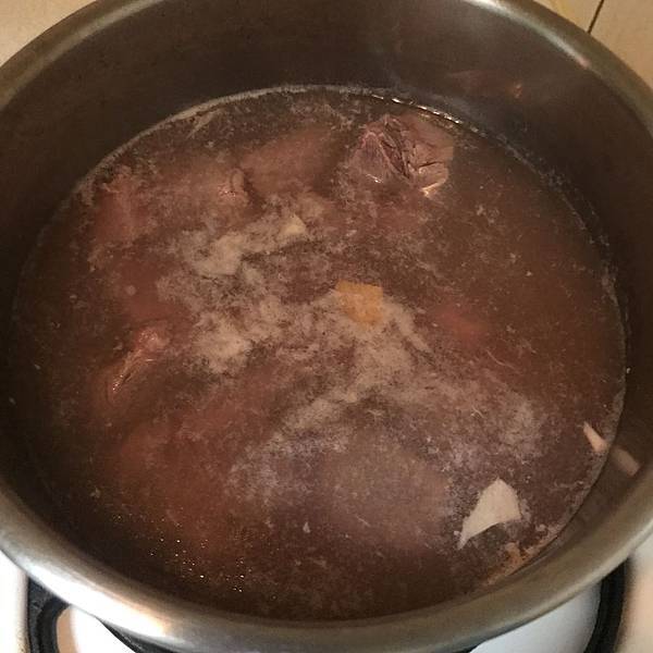 後來我覺得用瓦斯很麻煩,就放到電鍋裡,外鍋加了4杯水(因為有人說要燉煮1.5~2小時)。