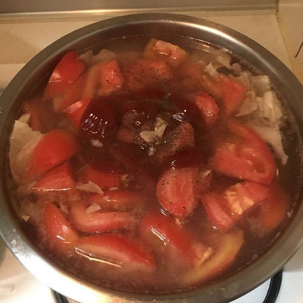 投入番茄塊。